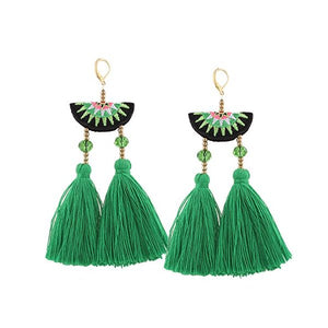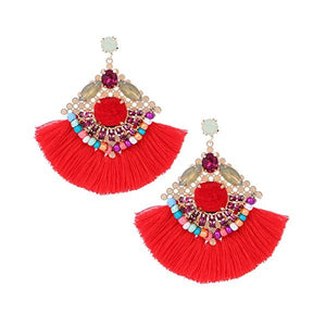 boderier Bohemian Statement Thread Tassel Chandelier Drop Dangle Earrings with Cassandra Button Stud
