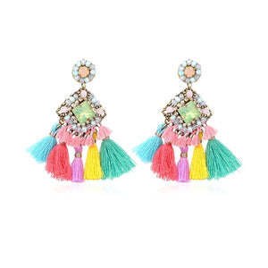 Crystal Beaded Tassel Dangle Earrings Vintage Statement Tassel Dangle Earrings for Women