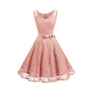 Dressystar Women Floral Lace Bridesmaid Party Dress Short Prom Dress V Neck L Blush